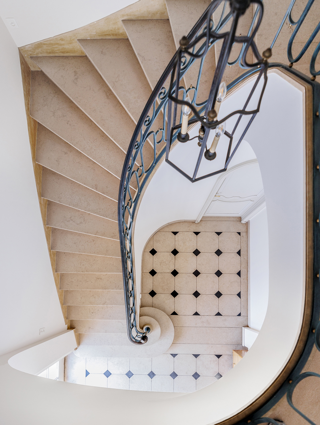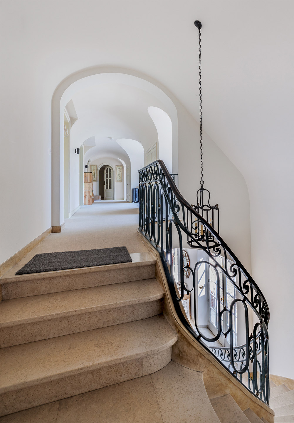 Le rez-de-chaussée se déploie ainsi : une imposante entrée en marbre avec vestiaire et toilettes, un salon ouvrant sur la terrasse, une salle à manger, un bureau avec salle de bains attenante, une cuisine/office avec hall de service, une buanderie, une salle de petit-déjeuner et trois garages.