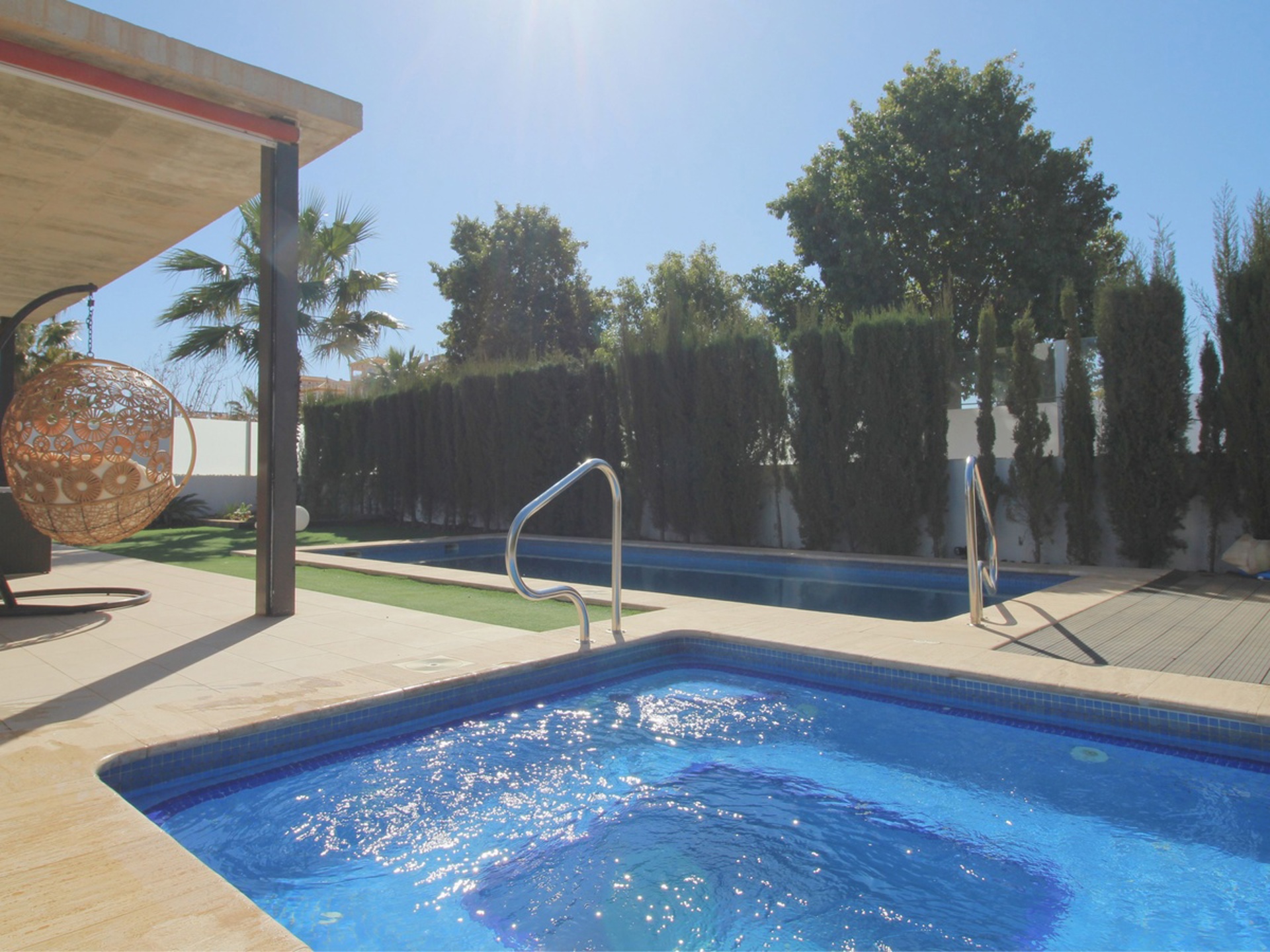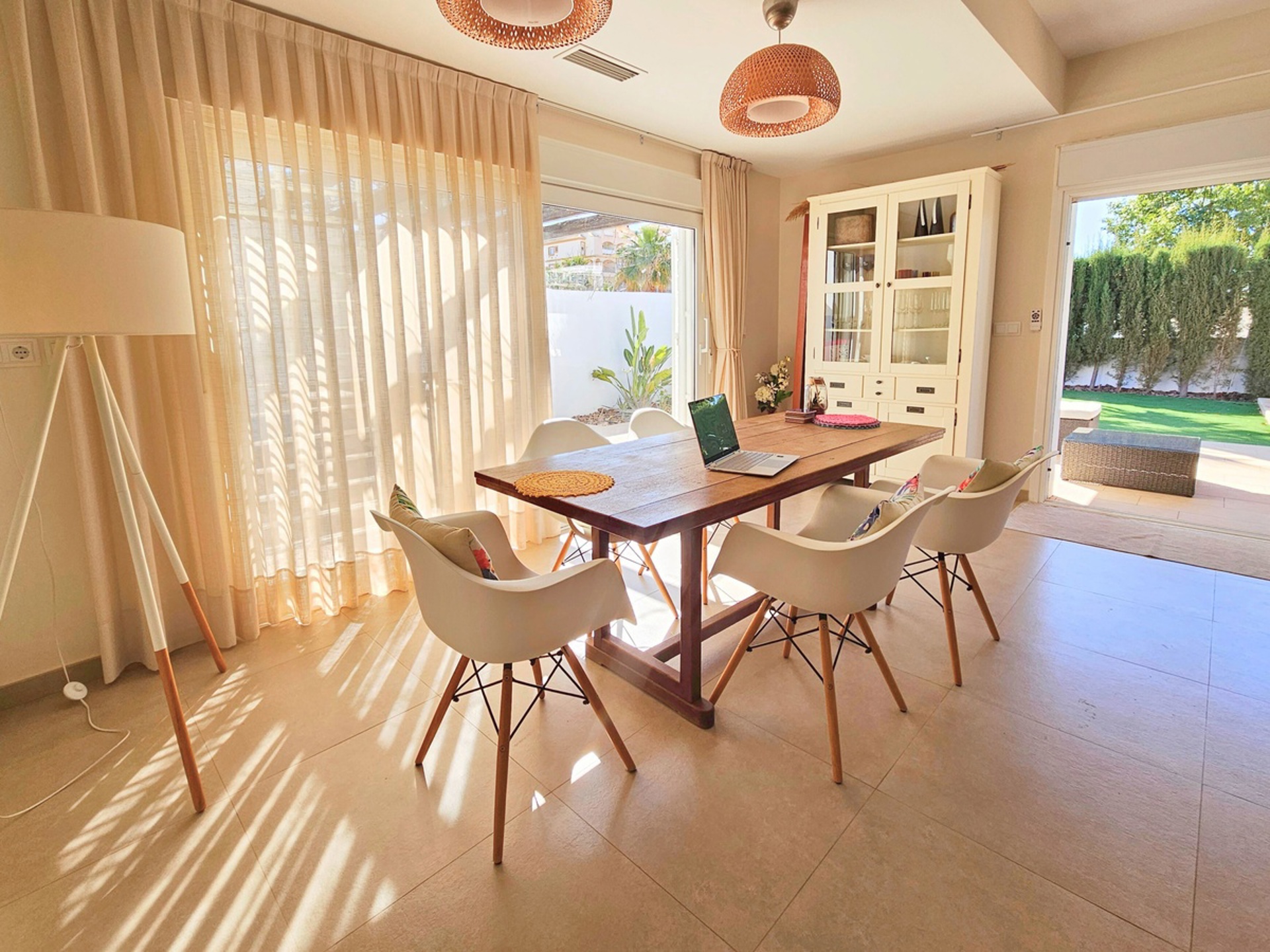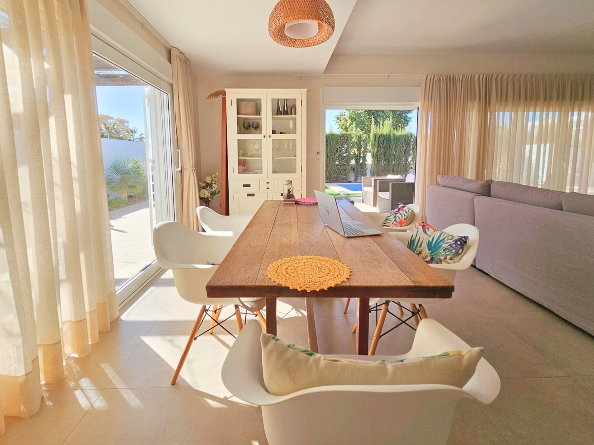 Accessible par un portail électrique avec une allée sécurisée pour le stationnement, vous découvrirez un grand séjour lumineux comprenant salon et salle à manger avec accès direct à la terrasse et à la piscine. La cuisine ouverte, entièrement équipée, est parfaite pour cuisiner et recevoir. La maison dispose également d'une buanderie avec douche, d'un water-closet et d'une chaufferie. Une pièce supplémentaire peut être aménagée en quatrième chambre.