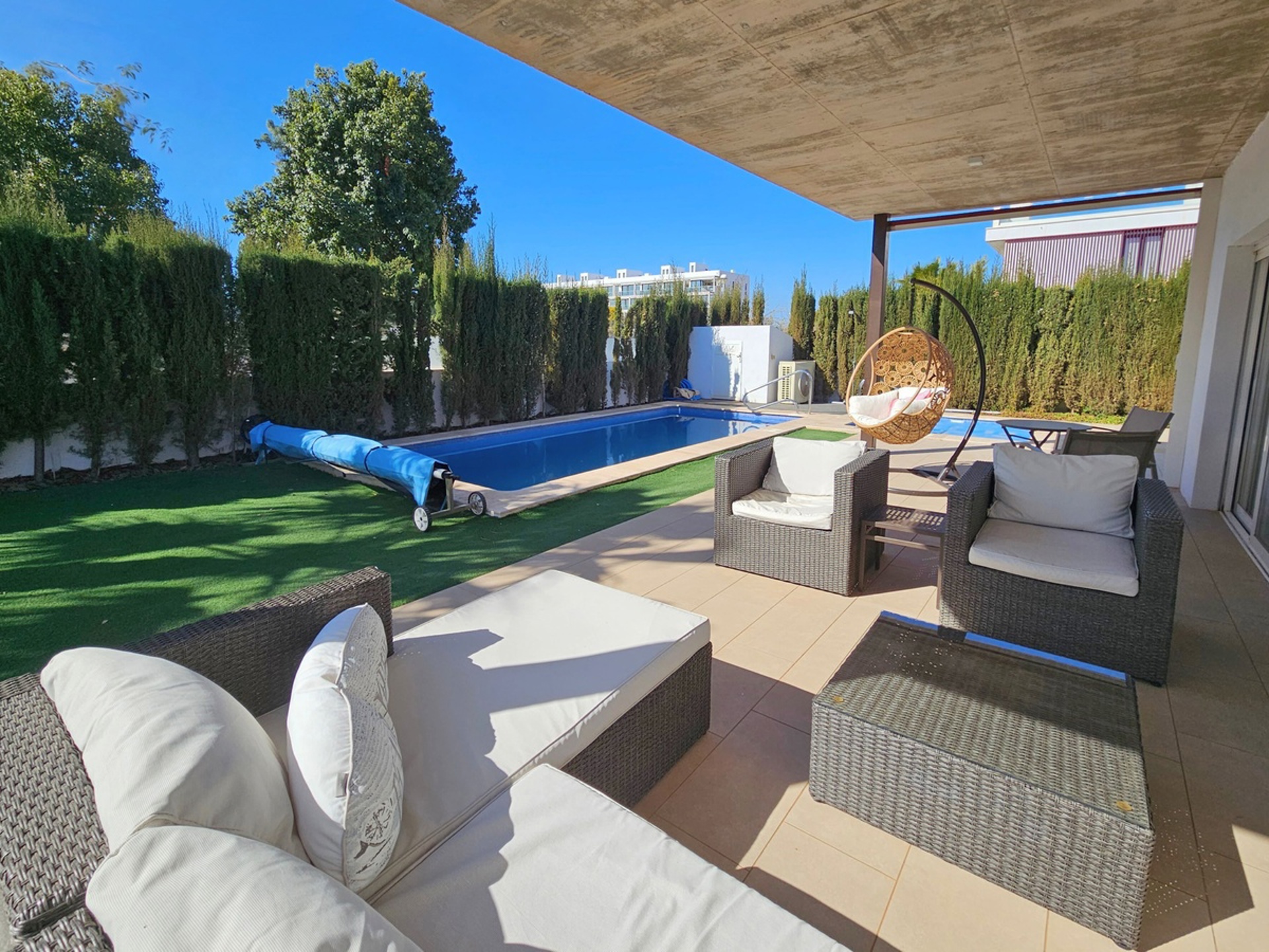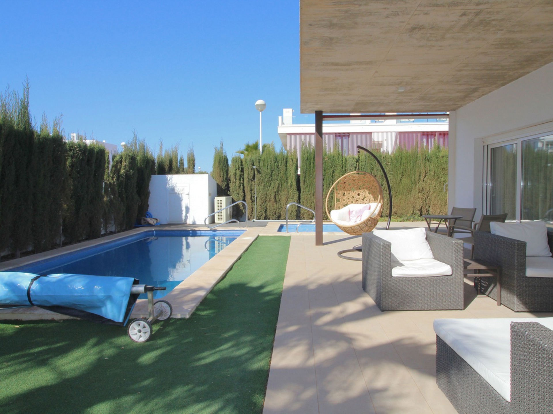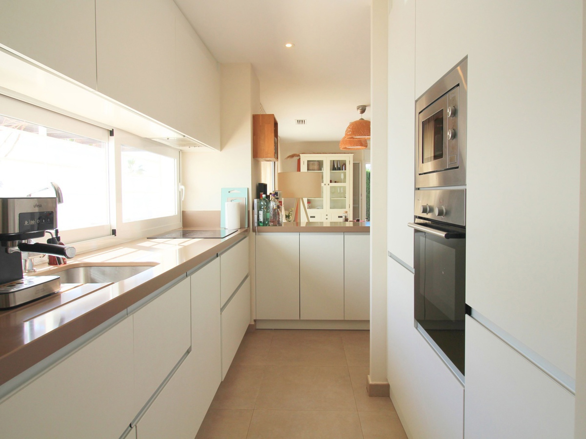 Accessible par un portail électrique avec une allée sécurisée pour le stationnement, vous découvrirez un grand séjour lumineux comprenant salon et salle à manger avec accès direct à la terrasse et à la piscine. La cuisine ouverte, entièrement équipée, est parfaite pour cuisiner et recevoir. La maison dispose également d'une buanderie avec douche, d'un water-closet et d'une chaufferie. Une pièce supplémentaire peut être aménagée en quatrième chambre.
