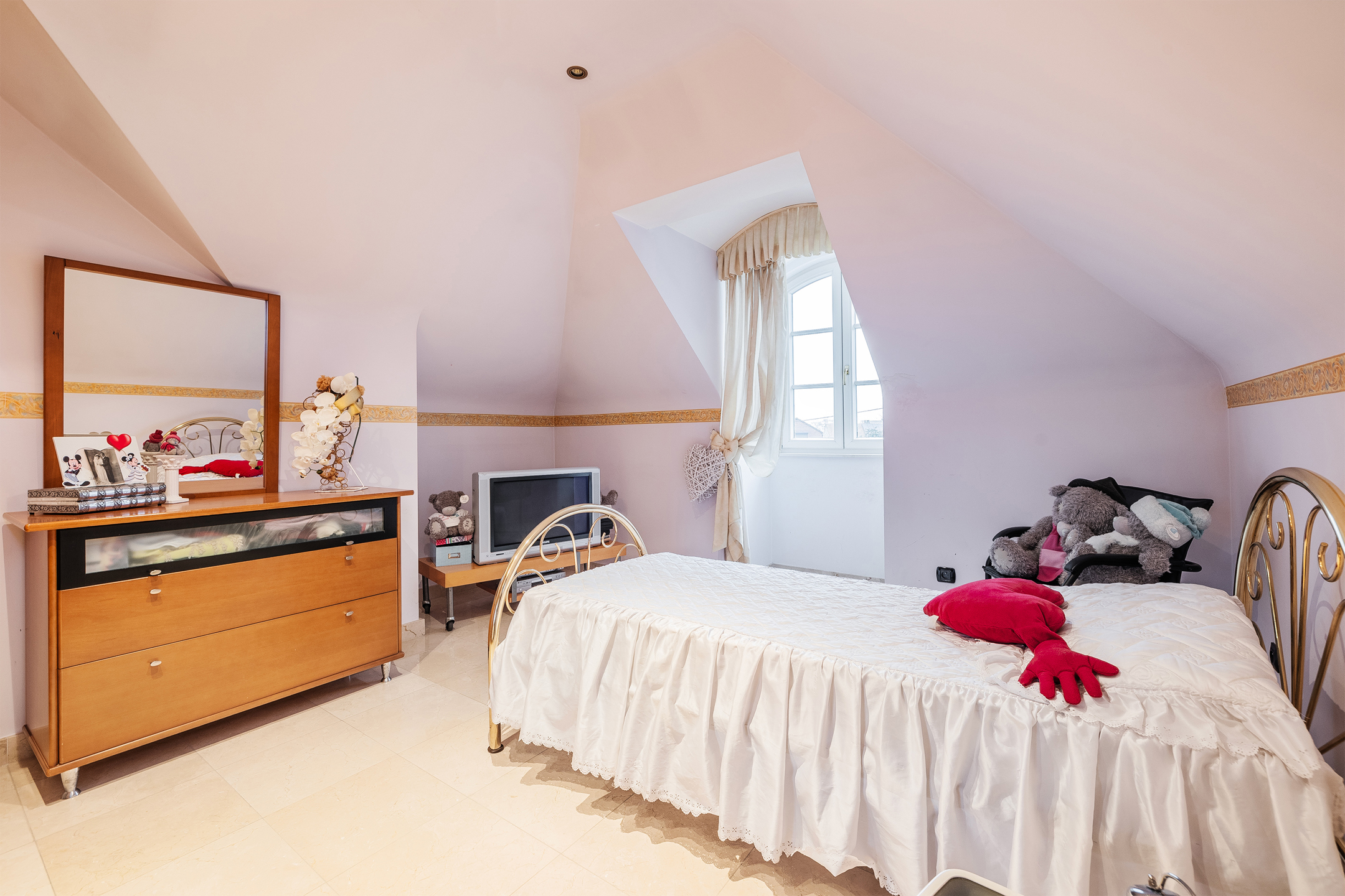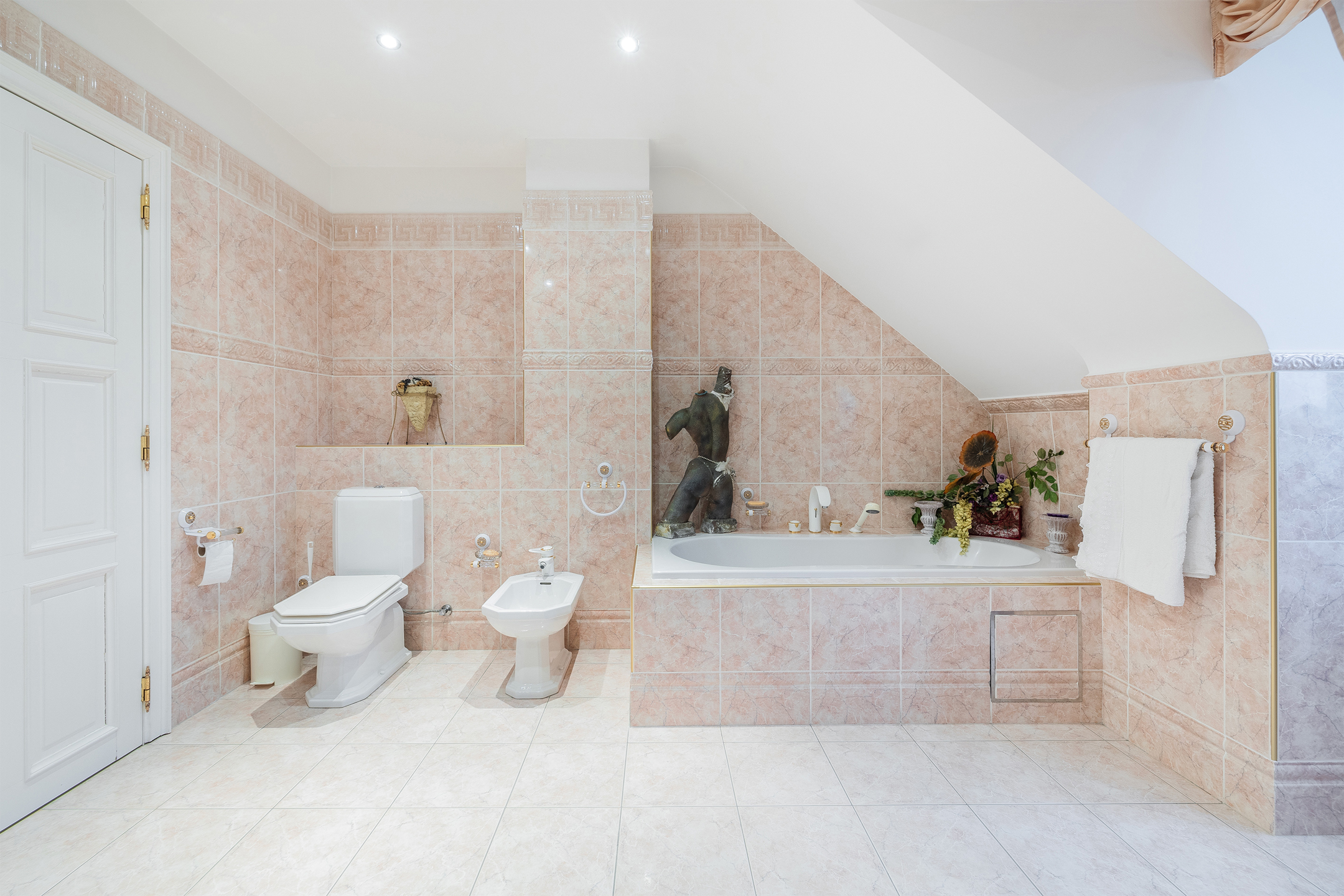 À l'étage, un hall de nuit dessert cinq chambres spacieuses et une salle de bains équipée d'une baignoire, d'un WC, d'un bidet et d'une double vasque.