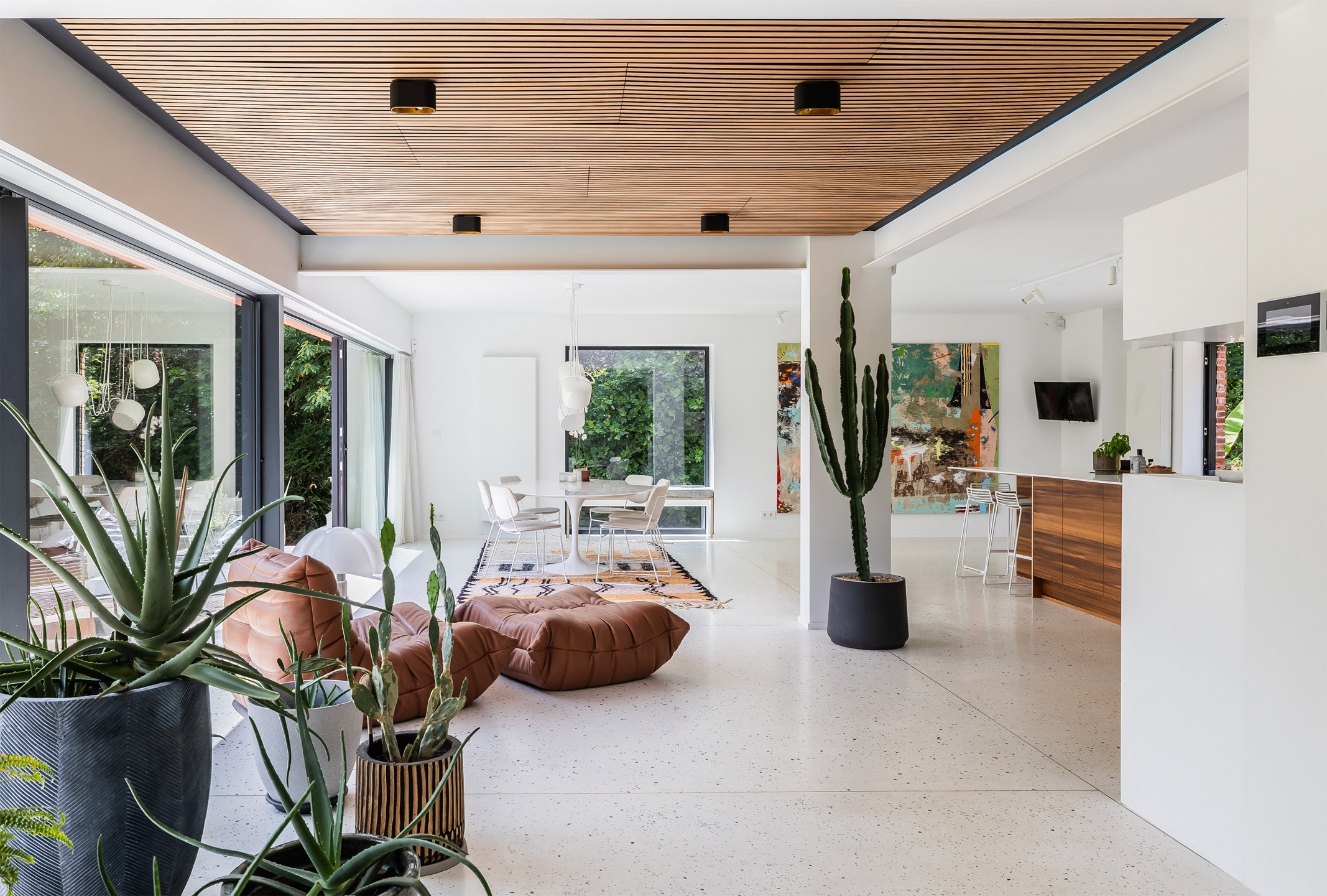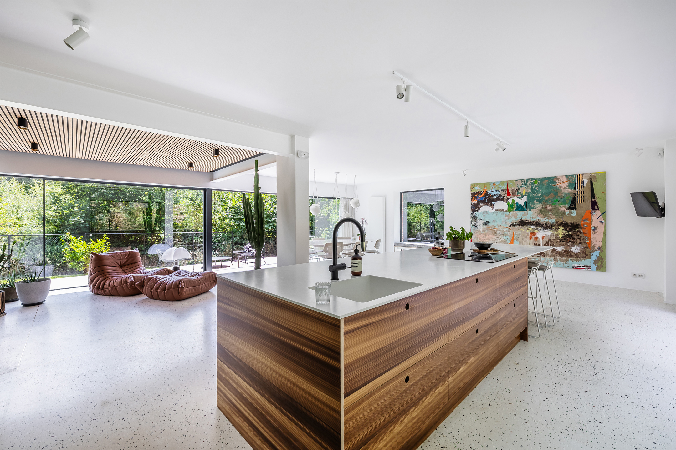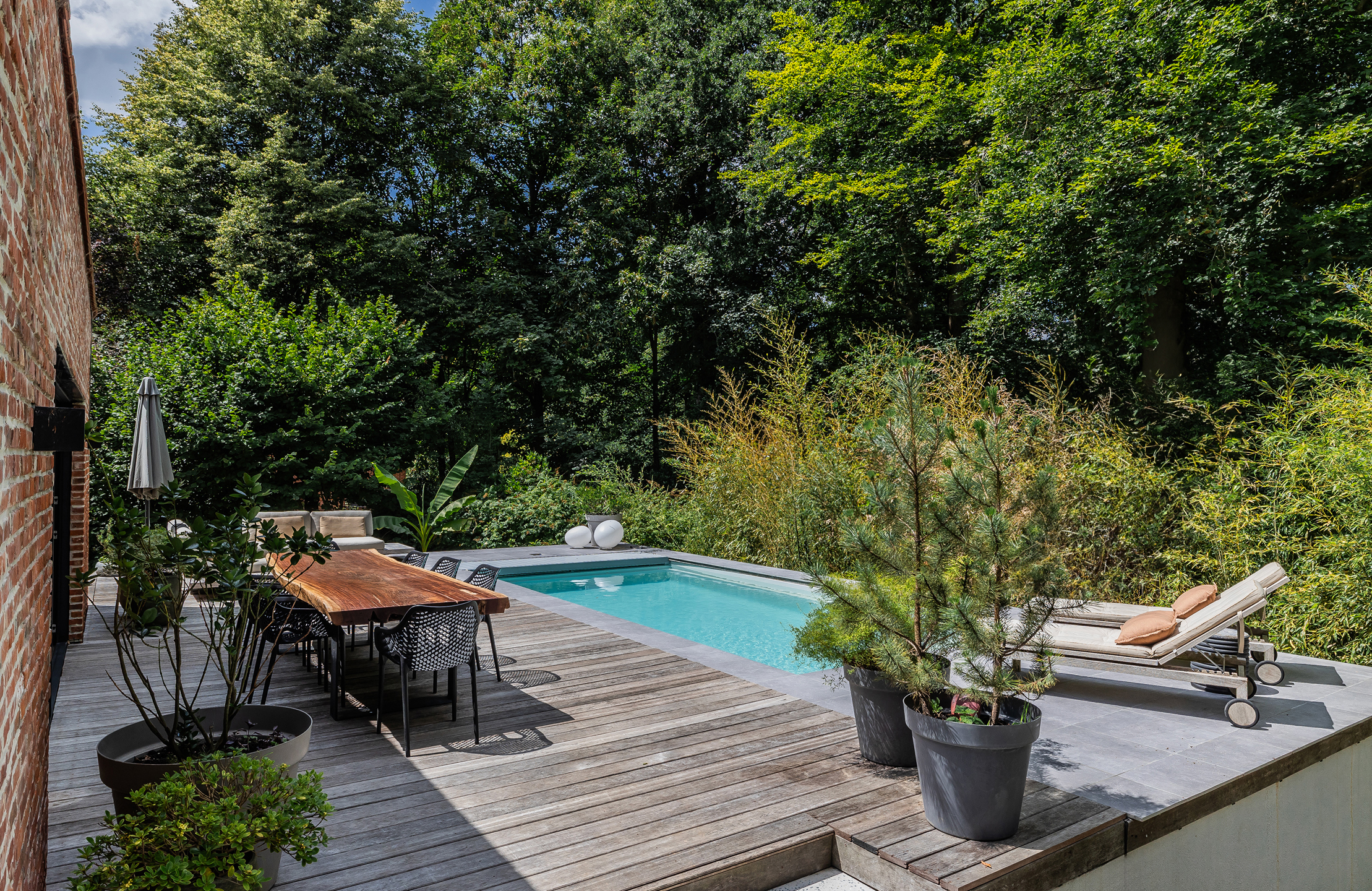 Rêvimmo Brussels vous ouvre les portes d’un lieu à part. Une villa rare, posée dans l’écrin verdoyant du Bois du Strihoux, où la nature, les espaces et la décoration évoquent la douceur des vacances! Ici, rien n’est banal. Rénovée avec passion et exigence, cette maison mêle l’audace au raffinement. Chaque détail raconte une histoire, chaque espace invite à ralentir. Un cadre pensé pour savourer le quotidien comme un été qui dure. Un séjour de 100 m² avec cuisine ouverte, inondé de lumière, s’ouvre en douceur sur la terrasse, la piscine chauffée et le jardin. Un bureau – ou une chambre – complète ce rez-de-chaussée convivial. À l’étage, la suite parentale de 35 m² offre une belle intimité. Deux chambres lumineuses, un dressing et une salle de bains accueillent le reste de la famille dans le même esprit de confort et de sérénité. Le sous-sol de 120m2 abrite un double garage, une buanderie et deux pièces aux usages libres – bien-être, télétravail, passions… À chacun son refuge. Un permis a été accordé pour une annexe contemporaine de 40 m² et un carport, ouvrant encore les possibles. Domotique, sécurité, performance énergétique (PEB B) : la modernité est au rendez-vous, sans jamais troubler la poésie du lieu. Cette maison n’est pas seulement un bien immobilier : c’est une parenthèse enchantée, une maison qui vibre, un lieu pour ceux qui cherchent l’exception, le charme, l’émotion.